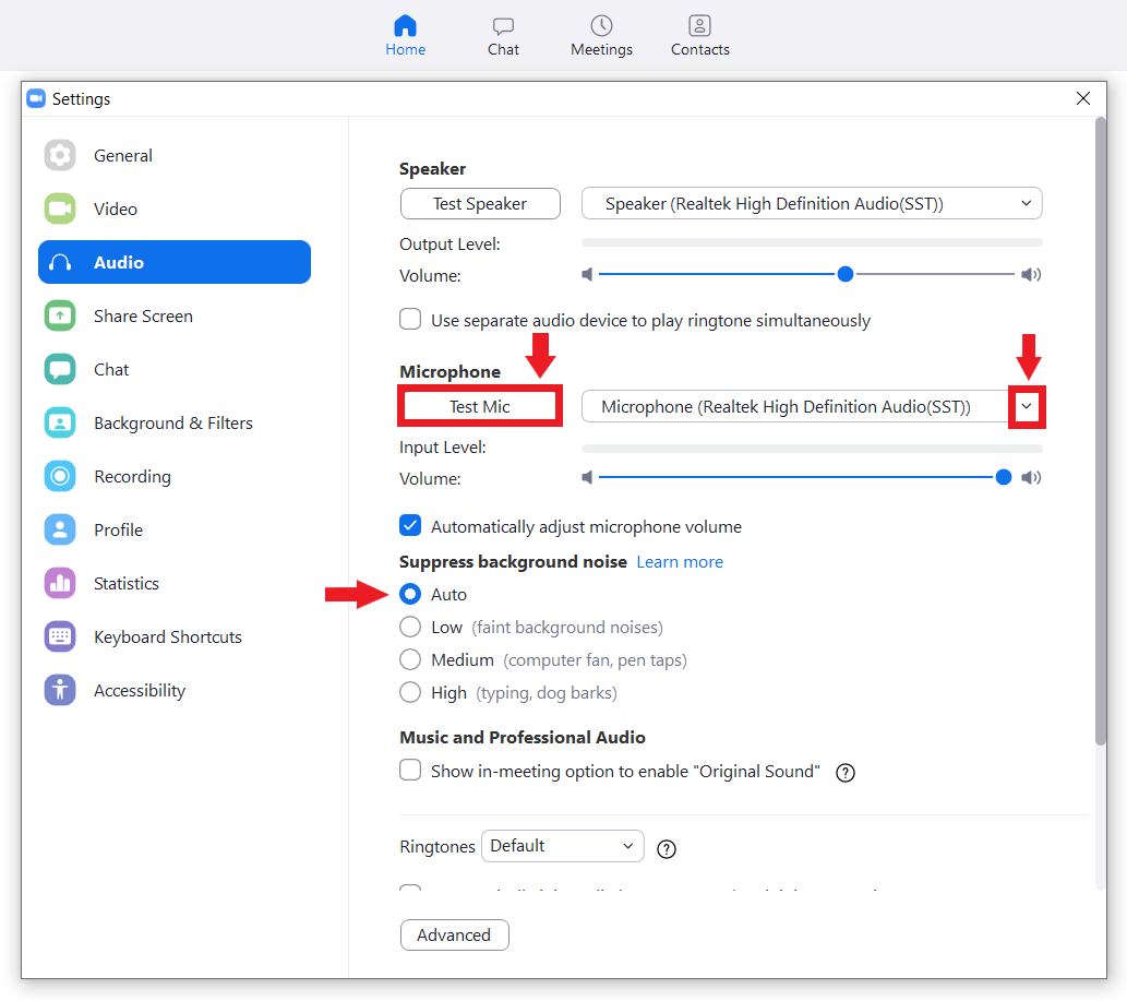 Prueba el audio dentro de Zoom antes de la reunión