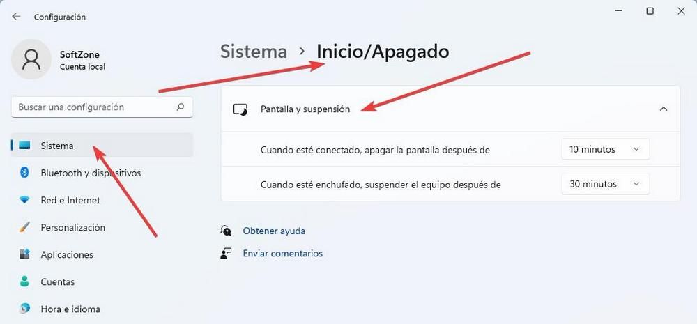 El tiempo de bloqueo automático se configura en Configuración > Sistema > Alimentación y suspensión. Aquí puedes definir cuántos minutos de inactividad deben transcurrir antes de que la pantalla se apague o la PC entre en reposo, lo que activa el bloqueo si está habilitada la opción de contraseña.